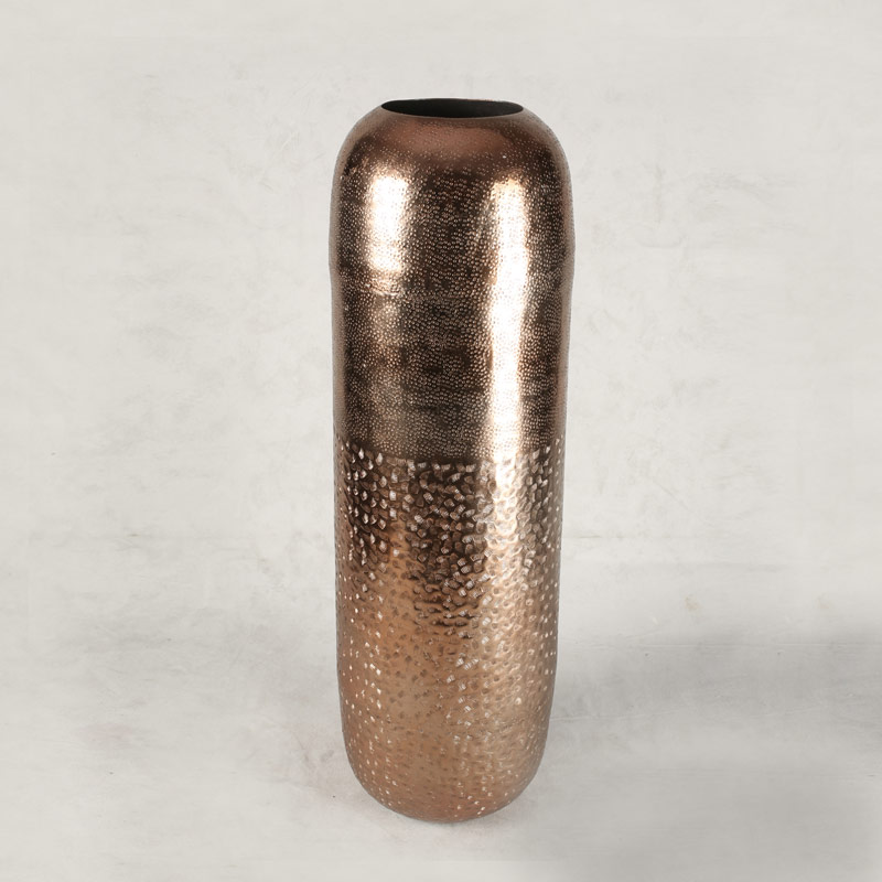 This bright copper vase with a multi-hammered texture is a unique find when it comes to aluminium vases. Its lean, tall shape makes it stand out in any corner and adds a splash of colour to your contemporary decor. Use this to showcase tall flowers and plants.