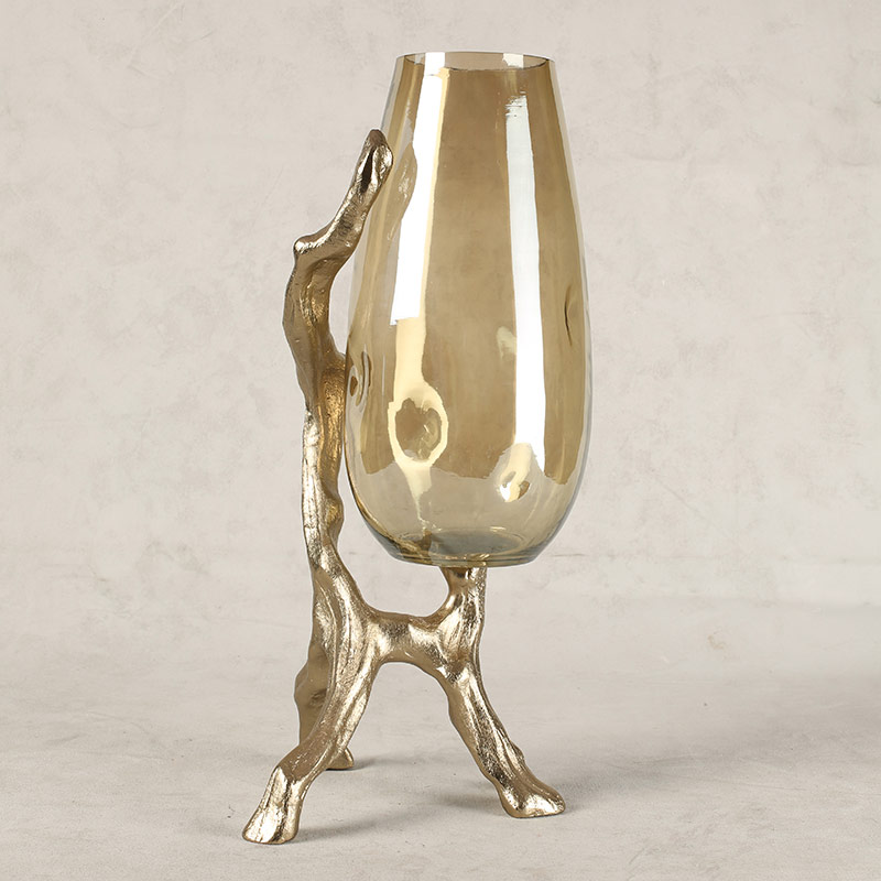 Fine Textured Gold Finished Aluminum Vase With Pinched Sage Luster Glass (Large) 23.00×18.00×46.00 CMS