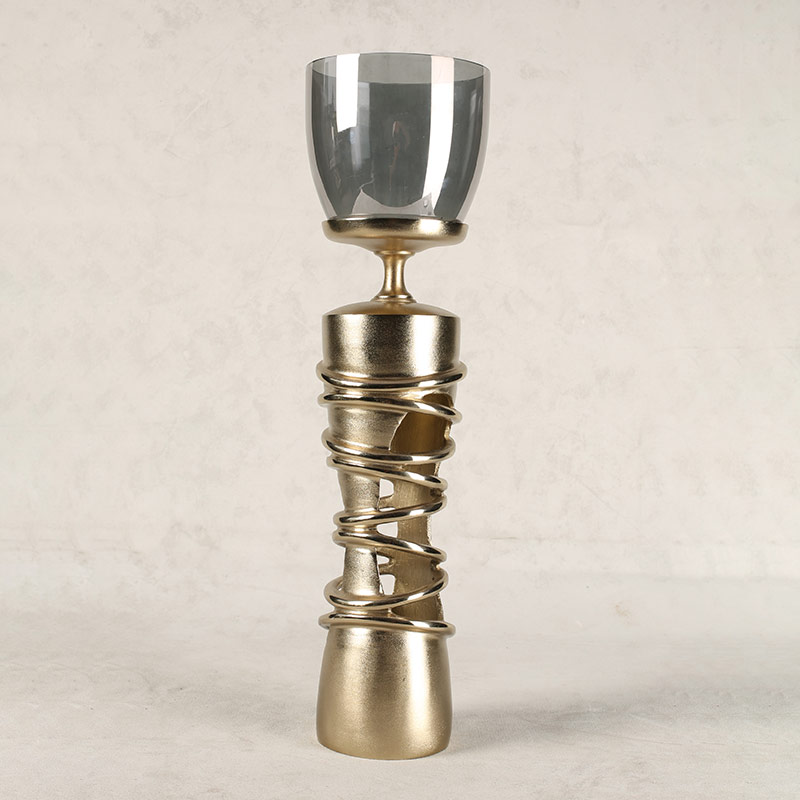 Gold Finished Aluminium Pillar Candle Holder With Black Luster Glass (Large) 13.80×13.80×49.50 CMS