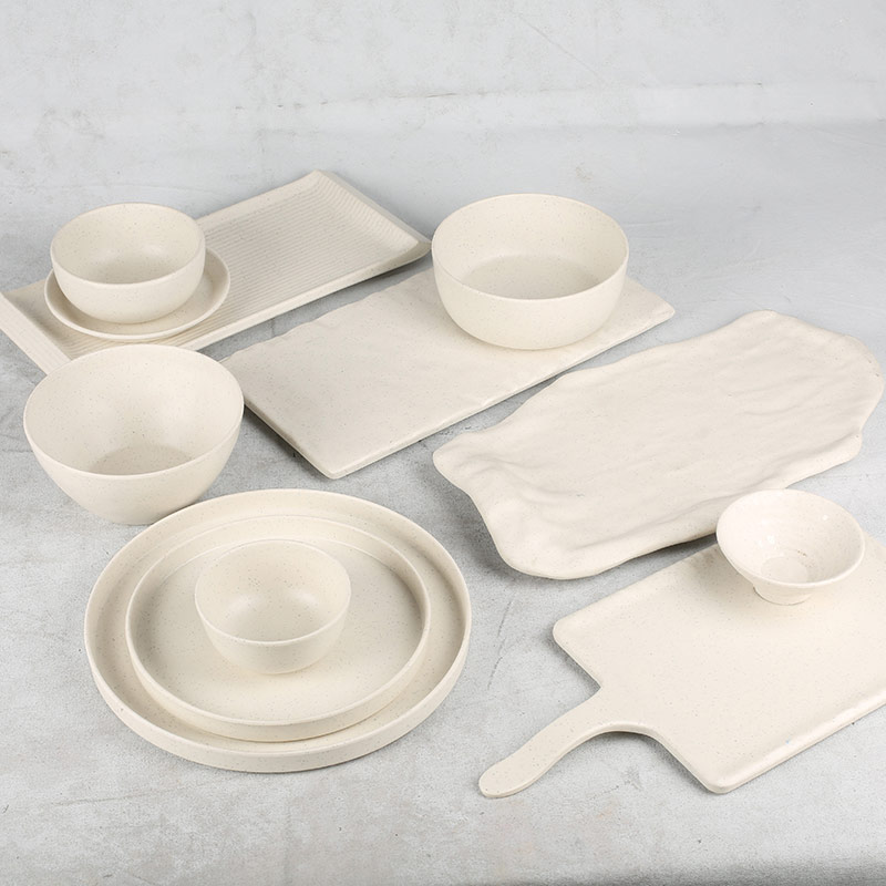 Melamine is synthetic resin, it becomes harden and formed after heating, heat and corrosion resistant, widely used for dishware, and is a popular material. Non-toxic, non-odours, light weight , break resistant , free form deformation, low-conductivity.