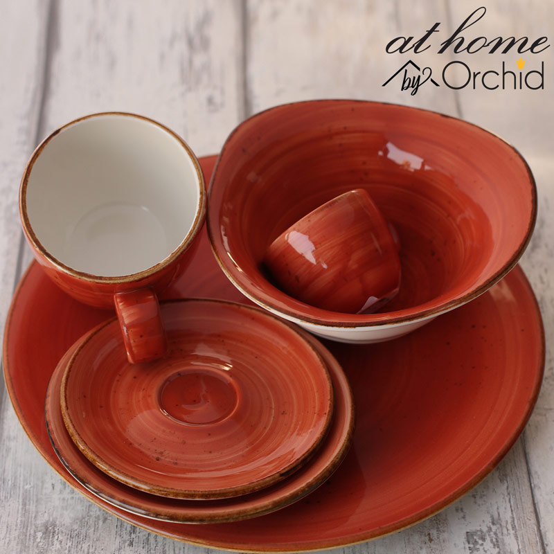 Petye by Dinex Porcelain Dinnerware A beautiful and stunning Rustic Terracotta European collection has rolled reinforced edge and aluminina strengthened body makes it Edge-Chip Resistance for all day dining. This Rustic look makes food presentation look totally unique and fantastic. New innovative shapes adds up to your table decoration.